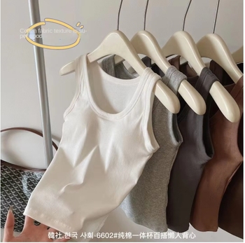 Canottiera Casual monopezzo in cotone a lunghezza corta Slim Fit con comodo imbottitura sul petto esterno in tessuto a maglia